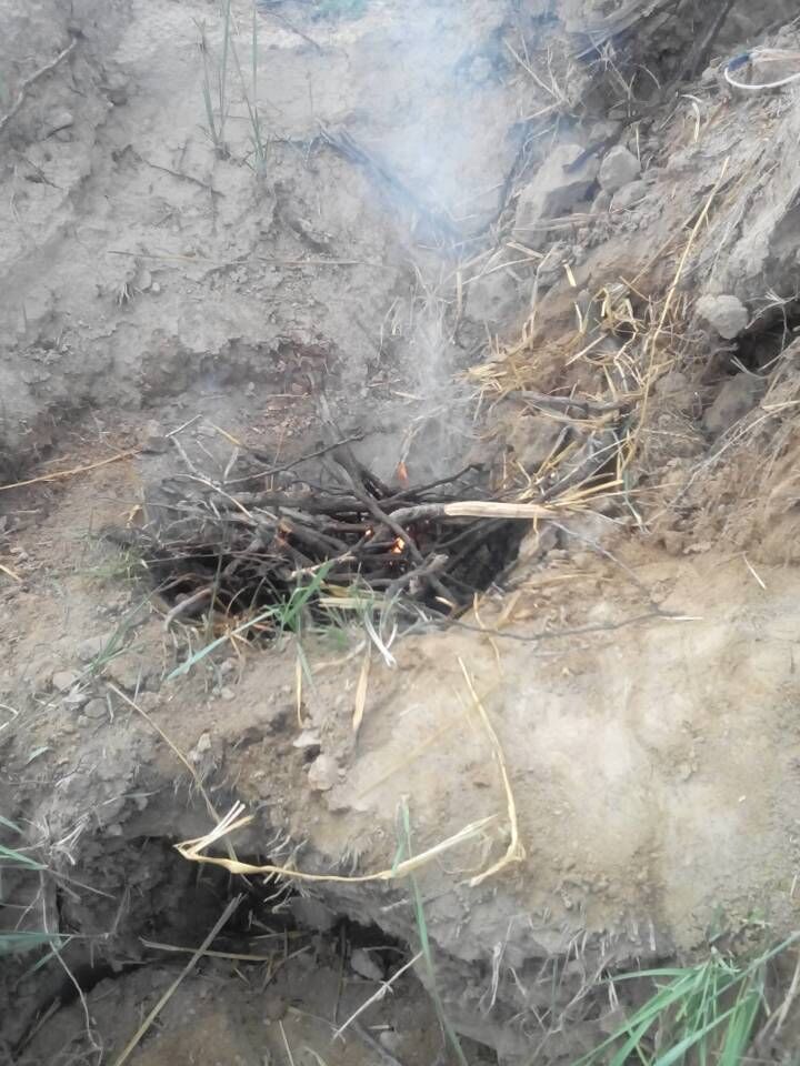 找到一个合适的地方,挖一个坑,顾名思义,就是挖一个像灶台一样的东西,注意的是,土质不能太松了,要不就塌了,还要在旁边开一个小洞来保持通风,再把柴火放进去,等到柴火烧的只剩下火星的时候,就可以把要烤的东西放进去了,就比如说洋芋一类的东西,这时一定要注意不能放太大的进去,要不然就烤不熟了,再用石块或者土块垒起来,以保持一定的温度,等到火完全烧灭的时候,就可以取出来了,这时的洋芋已经散发着浓浓的香味,再放些调料,味道更好。
