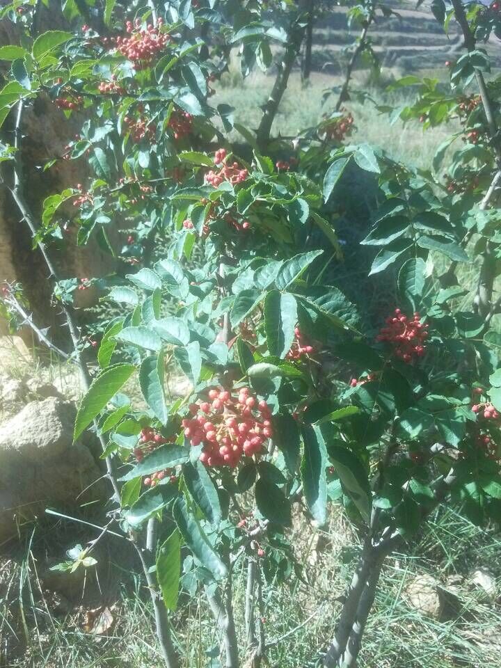 家乡的花椒树,他全生长满了锋利的刺,全省上下的枝头都有果实。我们把他的果实叫做花椒。花椒树落叶灌林,枝上有刺。花椒红色,种子黑色。可以用于药品或调料中。
