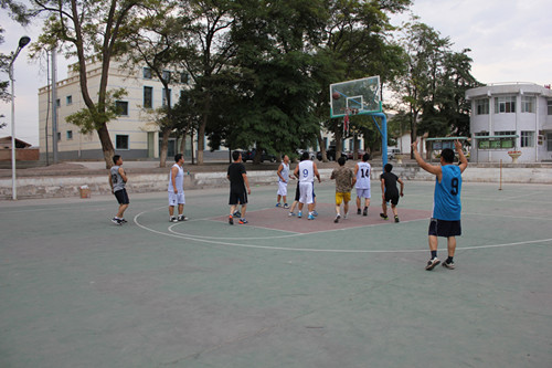 老师们平时给我们上课的时候大部分都是不苟言笑的,今天当他们换上篮球服站在球场上的时候,就像我们同学们打篮球一样。