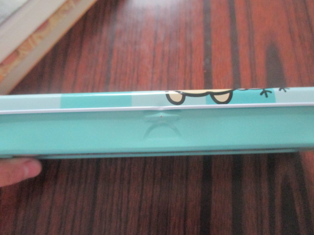 它通体以浅绿色为主,盖子上配有简单有趣的图案,既有大自然的味道,又有人文的感情色彩,配合得十分巧妙精致。