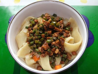 看吧!这是我刚做好的的臊子面,流口水了吧。有机会来我的家乡,我做给你吃哦。