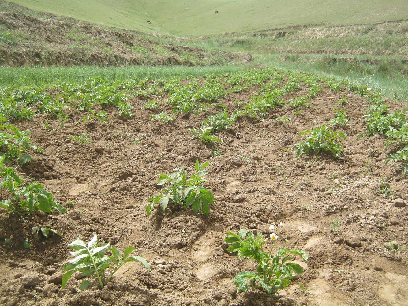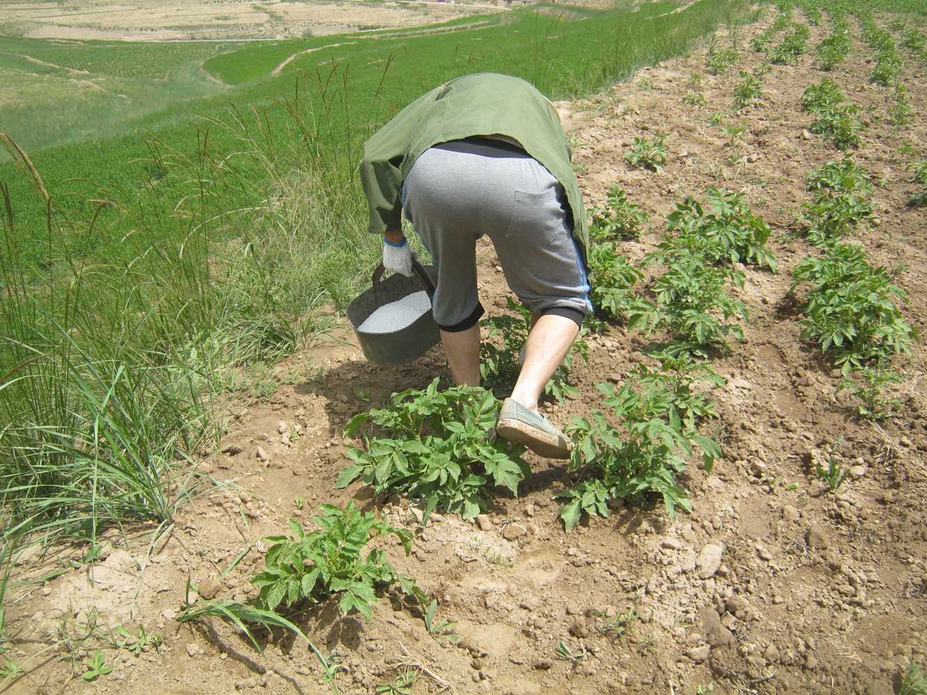 我们早早的就出发了,因为早晨的阳光不是很强烈,我们沿着一条小路,有说有笑的走向田地。到了地后我们开始分工:表哥、我、妹妹负责给土豆撒化肥,爷爷、爸爸、妈妈、姑姑负责耘土豆,就这样,我们开始正式劳作了。