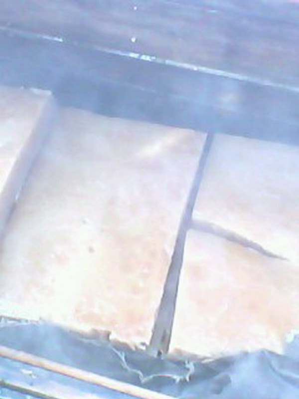 接着,把澄清后的水倒掉,只留底层的糊,在其中加入蓬灰水,然后将其放入一些器具中,再放入锅中,蒸大约一个小时左右,再取出来放凉后,面皮子就基本做好了。