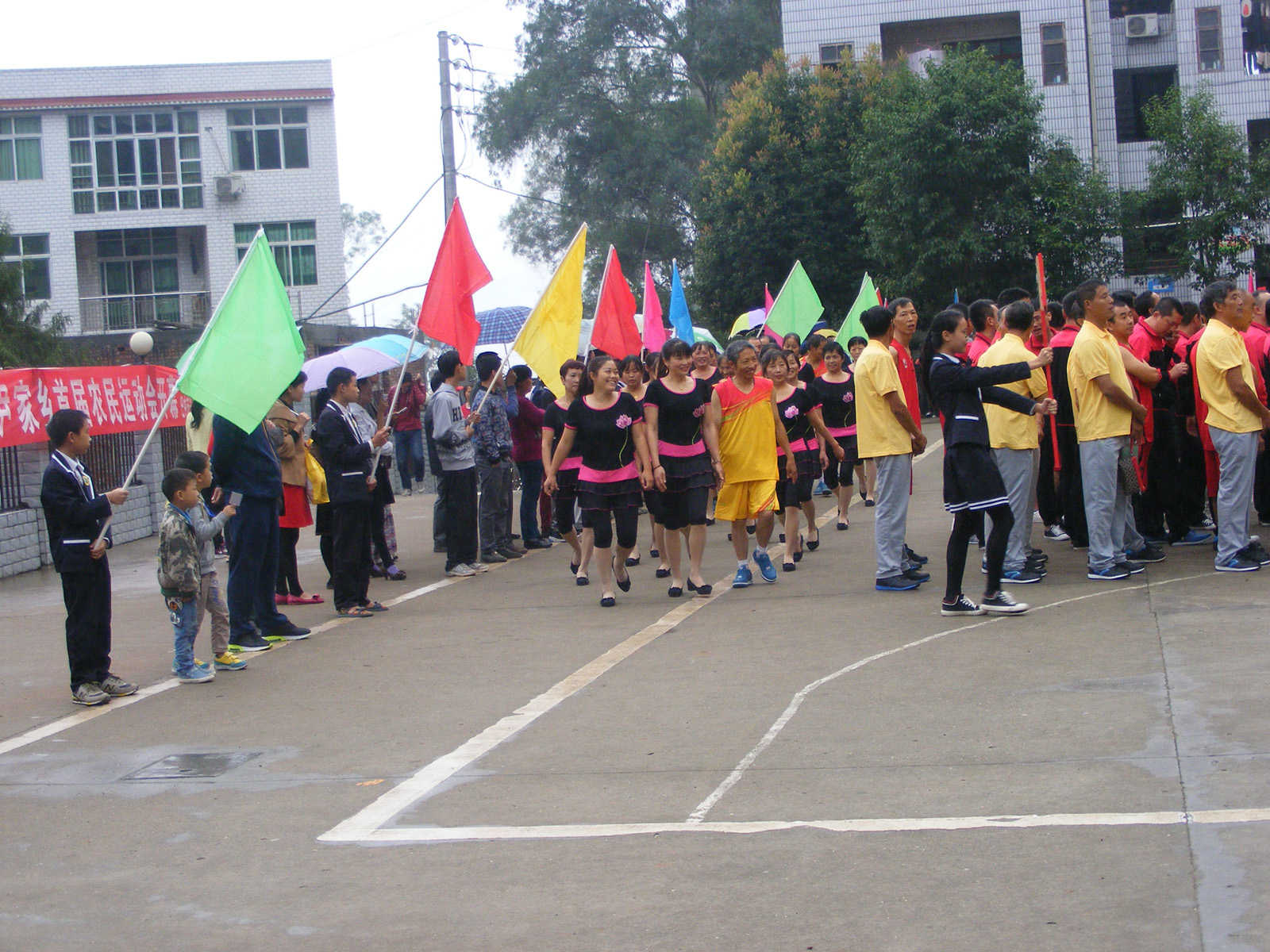 我拿着相机,随着比赛的队伍行进着,不断地记录下了这精彩的点点滴滴,生怕漏掉了其中的某一个场景。我正准备用相机定格下一个精彩瞬间的时候,不巧,这时一颗小小的雨滴挡在了镜头上。我望了望天,细雨开始光顾每一名运动员了。这时许多人领过事先备好的雨衣……刚走了一会儿神,待我再次观注时,只听台上一位领导宣布恩阳区尹家乡农民运动会开幕。随着嘹亮的运动员进行曲,彩旗队员奔跑起来,一个个代表队精神抖擞地走过主席台,随后是各村带来的精彩节目表演,有的是舞蹈,有的表演的是体操……尽管细雨在不停的飘着,但运动员和演职人员似乎忘记了雨的存在,他们是那么的投入......