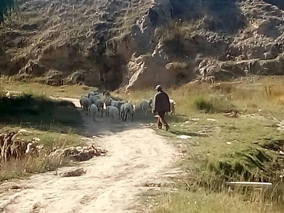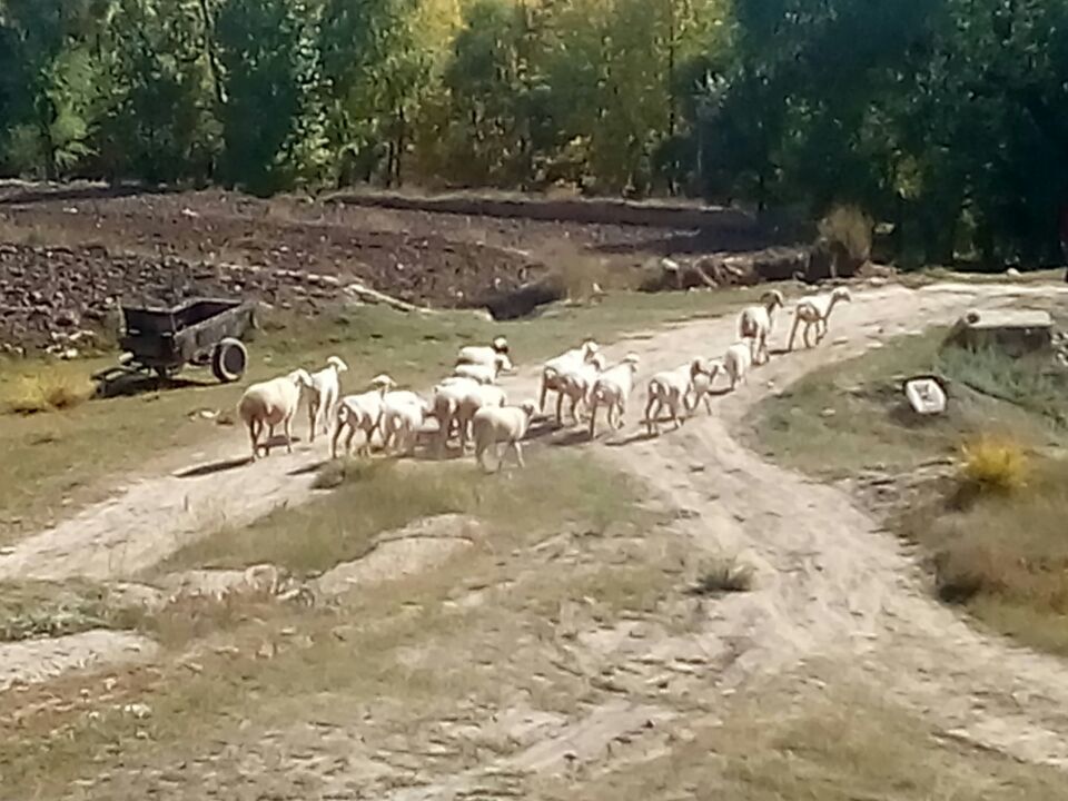 将一只只羊赶出羊圈,爷爷在前面带路,我就在后面赶羊,,为了找到新鲜的草,走了很长的一段路,终于来到了目的地,这儿满地都是枯黄中夹杂着绿的野草,虽是有些枯黄,但对羊儿来说,是一种美味。这儿的草不禁让羊儿们兴奋起来,立马张开大嘴,大口大口的吃了起来。我也终于可以休息一会儿了。