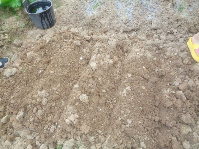 大约又过了二十分钟左右,地终于松好了。接下来就是把种豌豆的小坑挖好。时间大约又过了十分钟左右,种豌豆的坑终于挖好了,真是太不容易了!