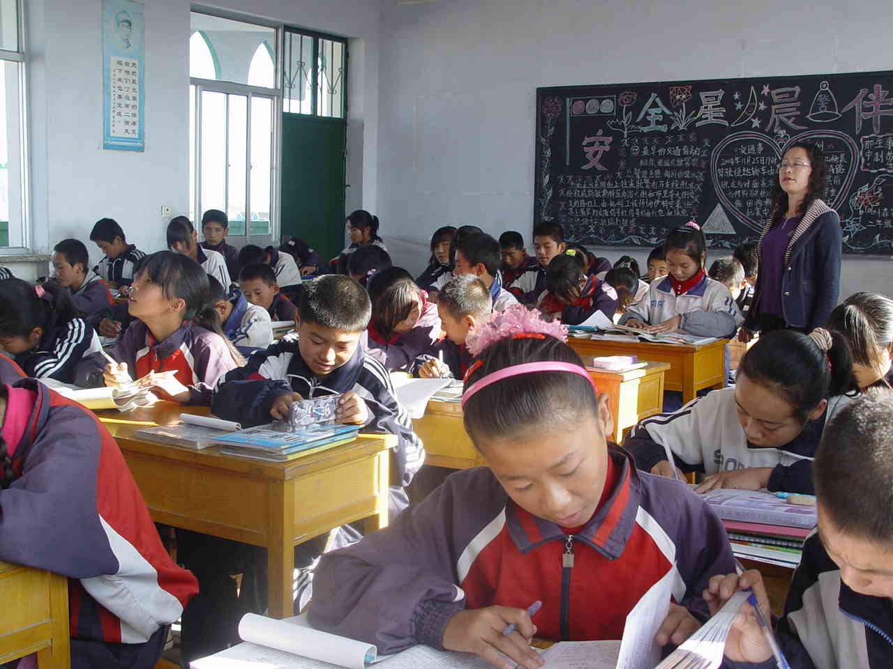 课堂有序进行,按照语文老师的要求,在她布置了学习任务后,同学们拿出练习本开始做练习。每当这时,教室里就只有同学们写字的"沙沙"声了。