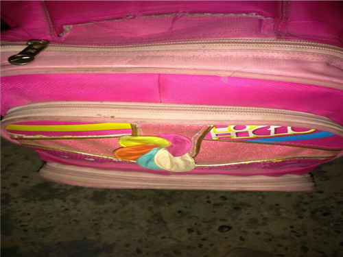 第二层上面有一朵小花,花瓣上有很多的颜色,花瓣下面有爱心,爱心有两种颜色,黄色,白色。里面装有笔袋。 最里面的一层也是最大的一层,装有各种书本。