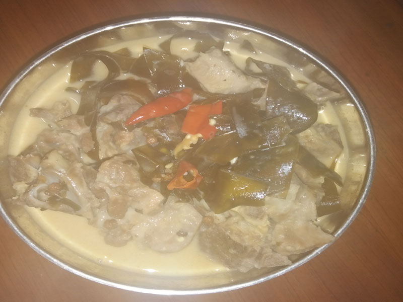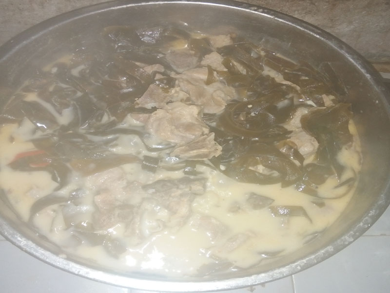 二十分钟过后,排骨和海带就煮好了。就可以起锅里哦,看看这排骨海带汤的颜色是多么的浓啊,看着好让人胃口大开啊!如果你想喝更浓得汤可以再熬更久些,味道就会更香。