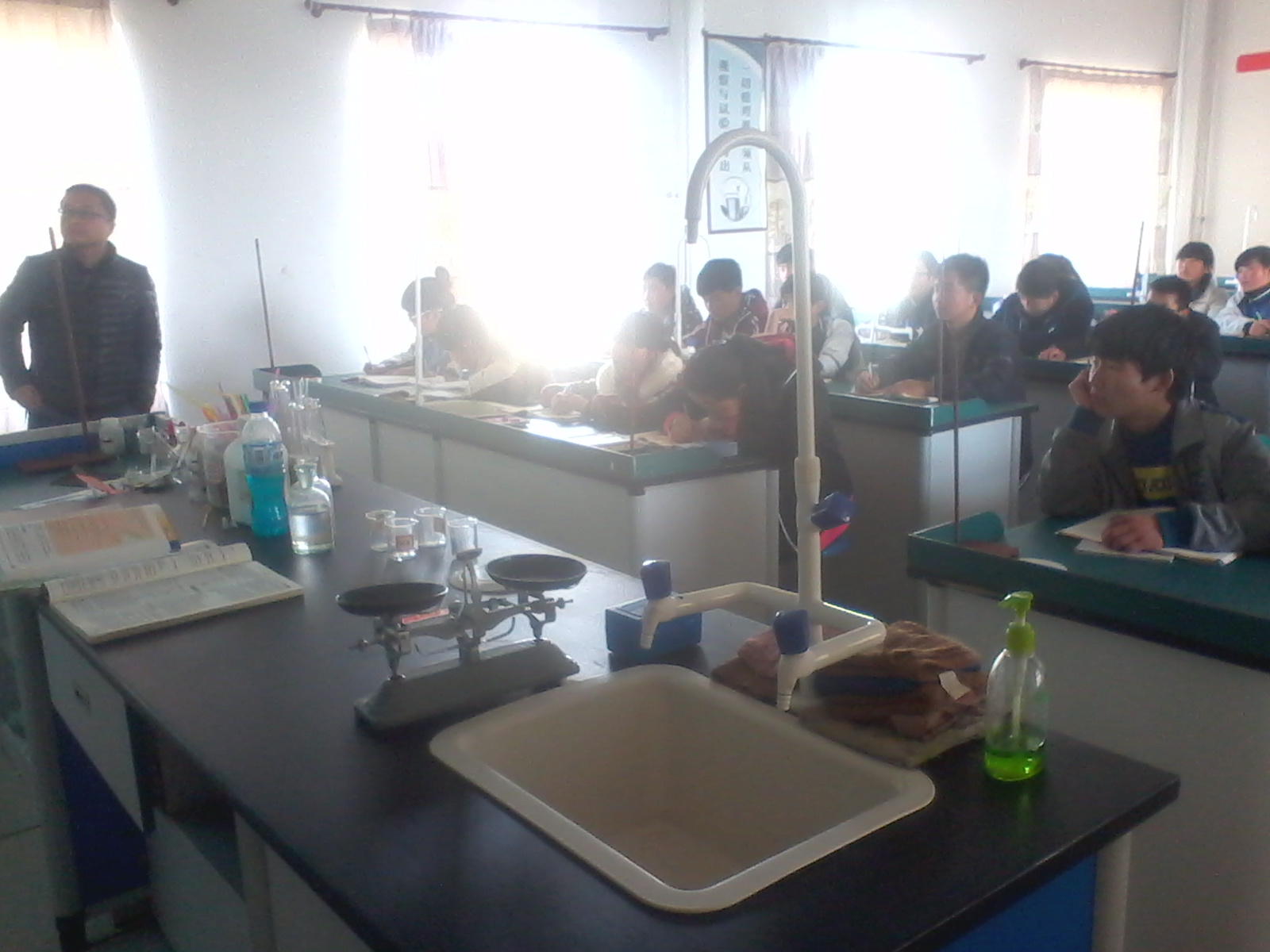 要开始第一节化学课了,我自然也是不理不睬。谁知,我们的化学老师——胡凯。进到教室,并没有开始讲述课本的内容,我看到他手里端着一些"瓶瓶罐罐", 他告诉我们:"这节课我们先做一些小实验,让你们对化学有一个大概的了解。"