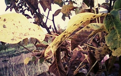 在我的家乡,核桃树很多。因此,每到秋天来临之即,黄叶也就散 落一地。我曾观察过从绿叶变到黄叶的过程,先是绿叶上加了几个黄色的斑点,之后树叶的正反两面都黄了,慢慢地树叶随之枯黄渗于水中。这时,便可以用"落红不是无情物,化作春泥更护花。"来形容。