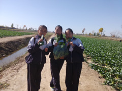 走出脱水厂 ,大片的绿色就占据了我的眼球,这就是滚广东人承包种植的西兰花和广东菜心,而广东菜心尤为特别,它们的成长速度极快,一年有3-4收成,这样下来收成也很突出,政府在这方面也很支持,特意为种植安装了喷灌,水肥一体化,浇水中施肥,施肥中浇水,方便省事不说,还大大的减小了人力,物力以及财力的浪费,这果真是高效产物。这里是农业的生产基地,政府的实验基地,也是"绿色蔬菜"的培植基地,绿色如同波浪一波接着一波,而种类却不同,看完广东菜,我们又沿着小路走下去,找到了芹菜的所在地,上千亩的芹菜长势可观,可能是做外贸出口的,所以生长条件是一等一的优良,当地的工作人员告诉我们"芹菜是我们当地的特色菜之一,不仅是农民,就是政府也花了巨大的心血,官民同心,才可以培育出这么优良的蔬菜,愿它能有更加美好的发展。