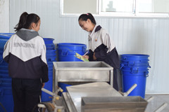 刚一走进,便看到工人们捂的严严实实的,而辣椒粉也是扑面而来,在老师的询问下,原来这是有批发商提供的辣椒而经过脱水厂加工制粉,用于出口国外,做贸易交易工人们热情的让我们尝一下味道,一直以为对辣椒没有好感的我,决定尝一尝,拿手指稍微的沾了一点放入口中,不似平日里的辣味,此时是甜的,据工人介绍说,这是专门的新品种,是有机的,辣椒的甜味依旧回绕在喉间,我们来到了第二站-芹菜加工车间,正值金秋,刚好是夏芹的加工期,看着偌大的机器有条不紊的运行着,一旁的工人说道:"夏芹是从当地的收上来的,然后先是切割,然后将叶子和杆分类,之后再清洗,剩下的就是定时烘干,再筛选最后包装向广东出口,在探访工人的工作的过程中,我们打听了一些工作人员,得知这些工人都是从外地搬迁来打工的,有的是从甘肃来的,有的是从四川来的……他们的家乡各不相同,但却都是要挣钱不得不全家搬来,只留下老人孩子在家乡,当问道在这里是否打工好些,他们都是一脸的矛盾,细细盘问才明白,他们原来一天要工作12个小时,很累但是因为这些都不是技术活,很容易就学会,就业不成问题,带着对工人的同情,我们决定帮着做一些力所能及的事情,看着有两个工人在打包装袋,我们就自告奋勇的去帮忙,看着挺简单,做起来真的不容易,没一会,不光是干的费劲,连身体也吃不消了,只好作罢。