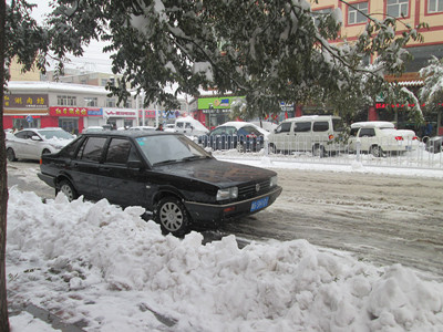 雪大约有十厘米厚,所以今天骑车和开车的人很少,大部分的人都选择步行上班。可是也有的叔叔不怕,开着车在马路上走,我真佩服他们的勇气,可是叔叔千万要小心,安全第一!