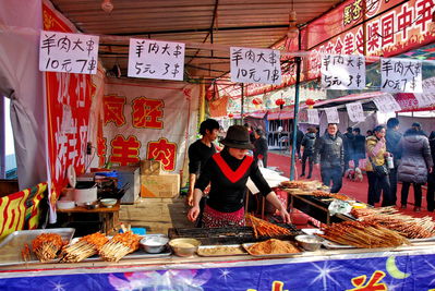 我们一家来到美食节的场上,一眼看去是人山人海的,我们来到一家羊肉串,我看的那东东就像吃,我的口水流多长,那大妈还扭动的身体也吸引了好多人真不愧有一招.........
