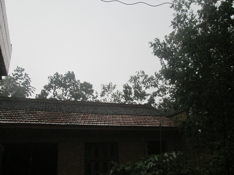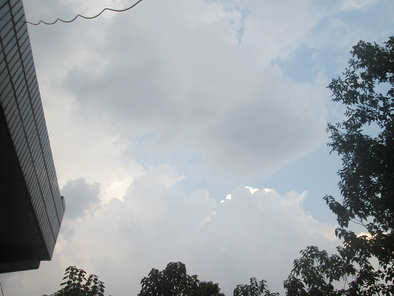 刚吃过午饭,此时正是一天中最热的时候,天上只有几片白云,阳光毫无阻挡地射向地面,地面一片滚烫,“轰隆隆”天边传来几声闷雷声,一直停歇不前,一会儿“轰隆隆”。雷声越来越近,越来越响,天空被黑云遮住了,一会大风刮过来了。