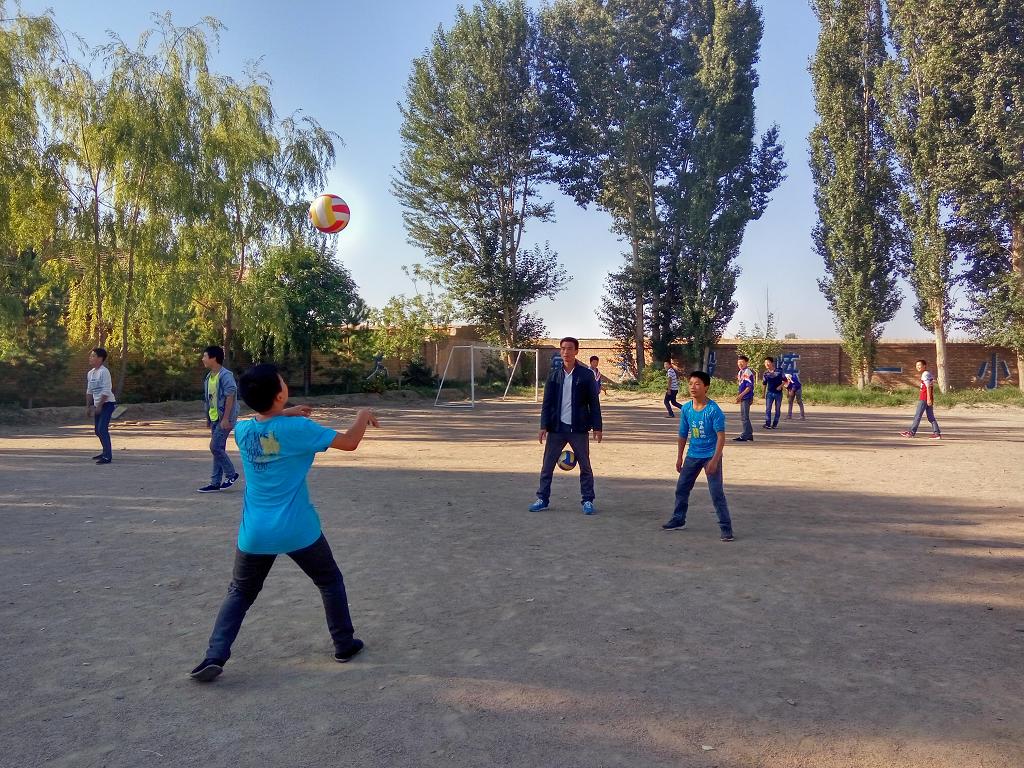 同学们争先恐后飞出教室,奔向操场,抢战有利地形,参加自己喜欢的课间活动。操场上有一块空地,不时传来喝彩声和欢笑声。瞧!排球小将们正激烈地对打着。他们接过对方打来的每一球,时而打旋球,时而打直球;在他们老师的指导下正稳步提高呢!