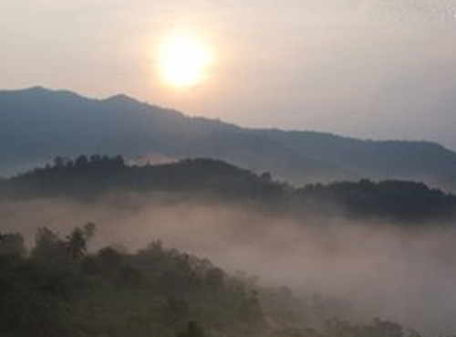 早晨,一出门就发现秋姑娘不知什么时候已给大树伯伯披上金色的外衣。放眼望去群山之间、道路两旁犹金黄一片犹如黄色的海洋。太阳缓缓升起,金光刺眼四周的雾霭渐渐被驱散。这时太阳的颜色与地上落叶的金色相互辉映是那么的吻合。再看看空中那一朵朵参差不齐的白云,仿佛正俯身欣赏地面的美景。湖面周围的枫树对着湖面自恋的欣赏自己的影子,它们好像要把这绚烂的颜色都展示出来。