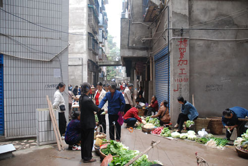 以前的街道到处是卖菜的菜农,宽阔的街道只剩下很窄的通道让行人通过,过往行人非常不便.像这样的情景到处可见,大街上随处可见挑着菜的菜农,他们没有一个固定的场所卖菜,也非常头痛,挑着菜到处跑,很累人.