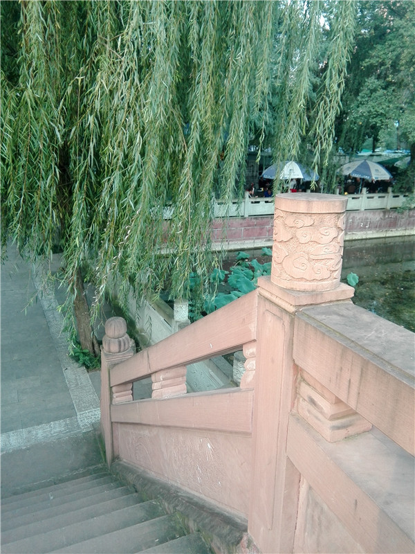 古朴的石桥,一汪静溢的泉水,幽???坐其中,茶声喧满座。红褐色,微微有几分潮湿的扶手,一种清新的气息便渗入你的心脾,你看这条条垂下的绿丝,宛如少女的秀发,在我的心中久久的飘荡,柳叶细细,微波涟漪。