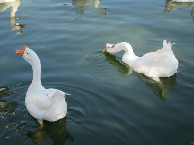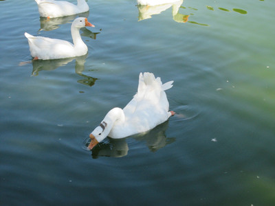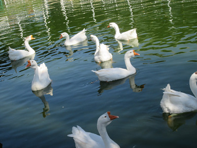 姥姥家的公园里,有一个很大的池塘。夏天是这个池塘最美的时候。那时,池塘里的水总是清清的,雪白的鹅在池塘里游泳,偶尔会在水面划出一个个圆圆的水波;几株粉红色的荷花立在水面上,一阵微风吹来,便会轻轻晃动;一群群小鱼儿在水中游来游去,吐出一个个小小的泡泡。池塘边种着一棵棵高大、挺拔的垂柳,柔软的枝条垂下来,好像一群散开长发的美丽少女在池塘的清水里漂洗头发一般。