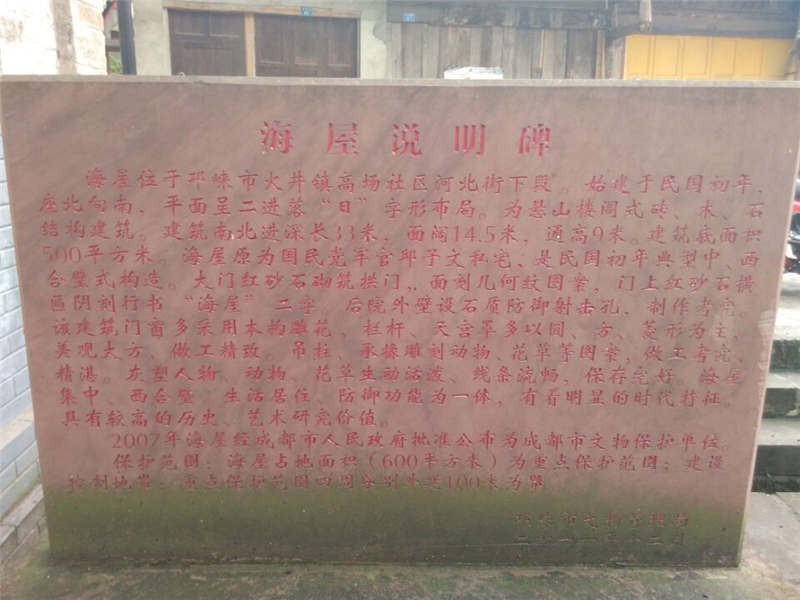 火井老街上有一座老宅子,即海屋,它的旁边就是火井最老的大榕树。前年镇又重新维护了这座宅子,现在免费对外开放。里面是羌族的文化遗产。有羌绣以及古代文物,精美绝伦。后面是一片竹海,四季常青,阁楼上是观竹的好地点。有时候我会来这里写生,一画就是一上午。