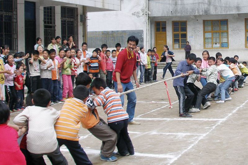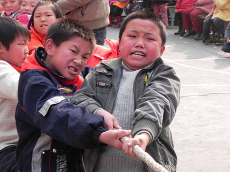 "嘟——"一声短促的哨声一响,比赛正式开始了,同学们手上经脉突起,肌肉紧绷,像猛虎一般用双手牢牢抓住绳索,使劲往后拽。但不知怎么的大家用力不同,我方直接被他们拉了过去,哨声一响第一局我们输了,但这并没有打击掉我们的自信心;第二局开始了,我们使出了全部力气把他们拉了过来;第三局随之开始了,我方队员乘胜追击,可能在第二局力气用多了,在第三局时僵持了有一分钟,红布条左右移动,双方势均力敌只见红布条在两队之间徘徊,比赛进入了白热化状态呢仿佛时间停留了,突然我们一鼓作气,奋力一拔红布稳稳的移到了我方面前"我们胜利了"!经过三轮比赛我们以2比一胜利了。