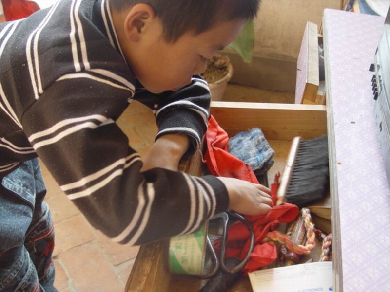 不一会儿,弟弟又把目光移向了我家的抽屉。他拉开抽屉,不停的翻着里面的每一件东西,他拿起红领巾在脖子上比划了几下,放下了;然后又拿起一本书胡乱的翻了几页,放下了......他对什么都充满了好奇。