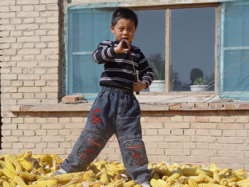 最后,弟弟在抽屉里翻出了我的双节棍,并拿到外面的玉米堆上玩儿。他学着电视上的人那样,左甩一下,右甩一下,偶尔头被打了一下他也不在乎。玉米籽就因为弟弟在上面玩儿,就因为弟弟一时的淘气,而从玉米棒上脱落了下来。