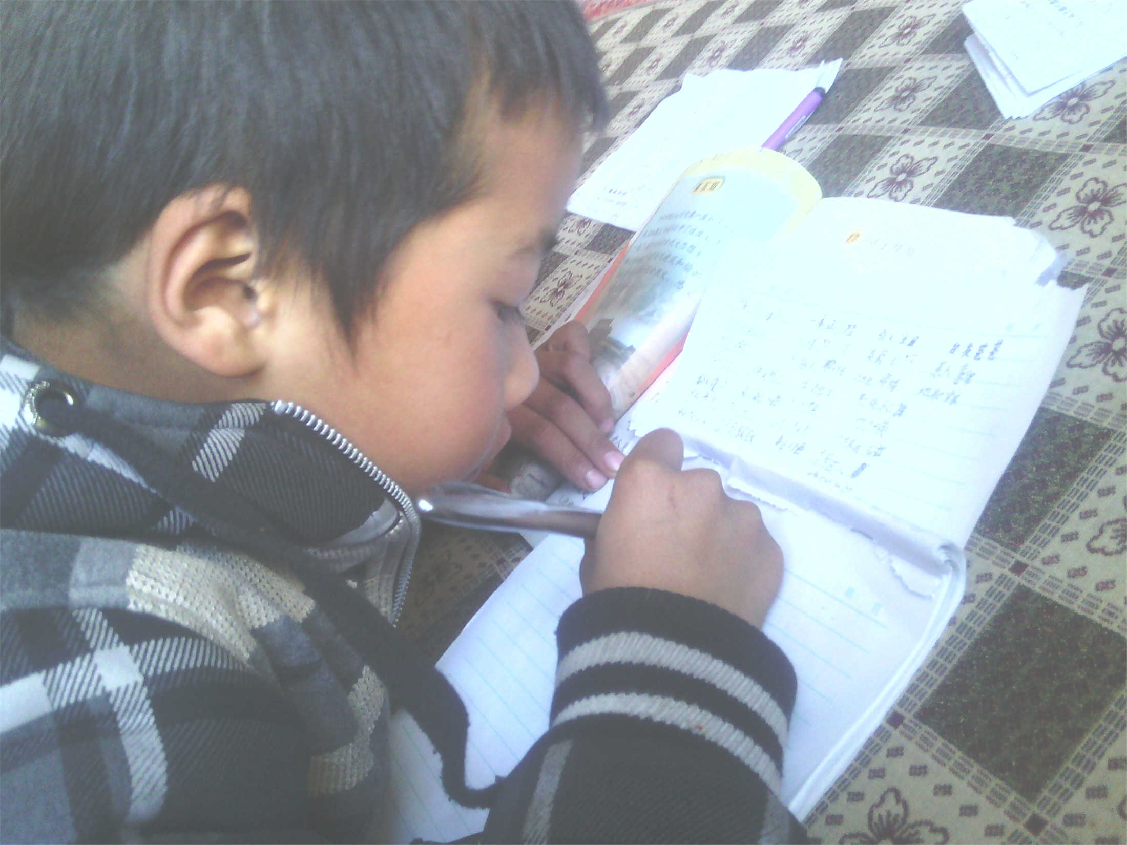 玩总归是玩!他写起作业来也很认真,一丝不苟的盯着,一笔一划的写着。他学习不差,可虽是认真,但写出来的字足以比得上画。唉,我拿他也没有办法。