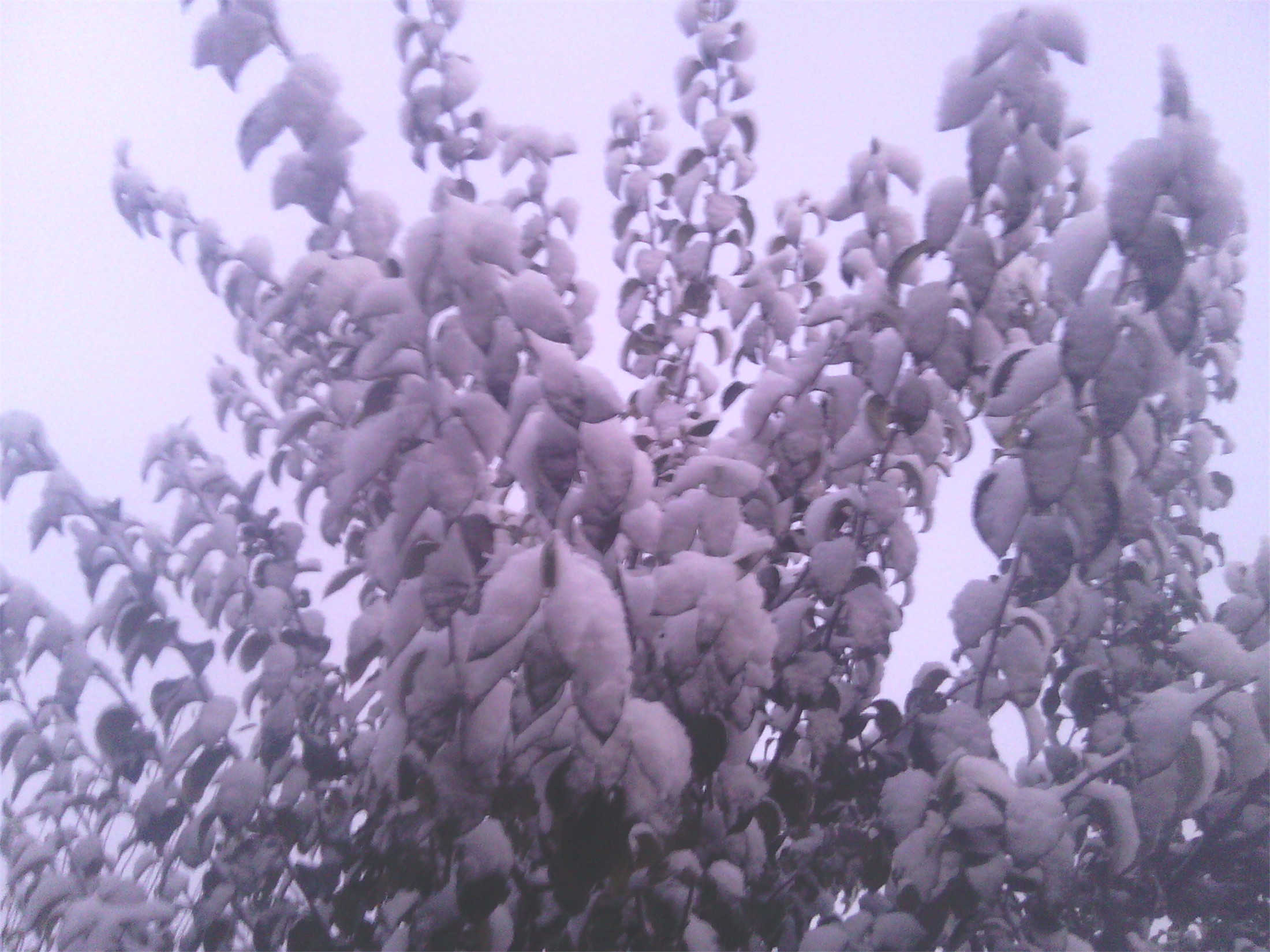 树上的叶子虽没有掉完,但看起来也是所剩无几了吧!雪落在叶子上,显得树更饱满了,树叶上全是雪,他们把树枝压的都弯了下来,但树枝却不这么想,有了雪,它好像更骄傲,挺直了胸膛,大声告诉人们:“冬天来了!”太阳慢慢升起,朝霞斜射在树叶上,那点雪好像突然害了羞,微微露出些粉色。