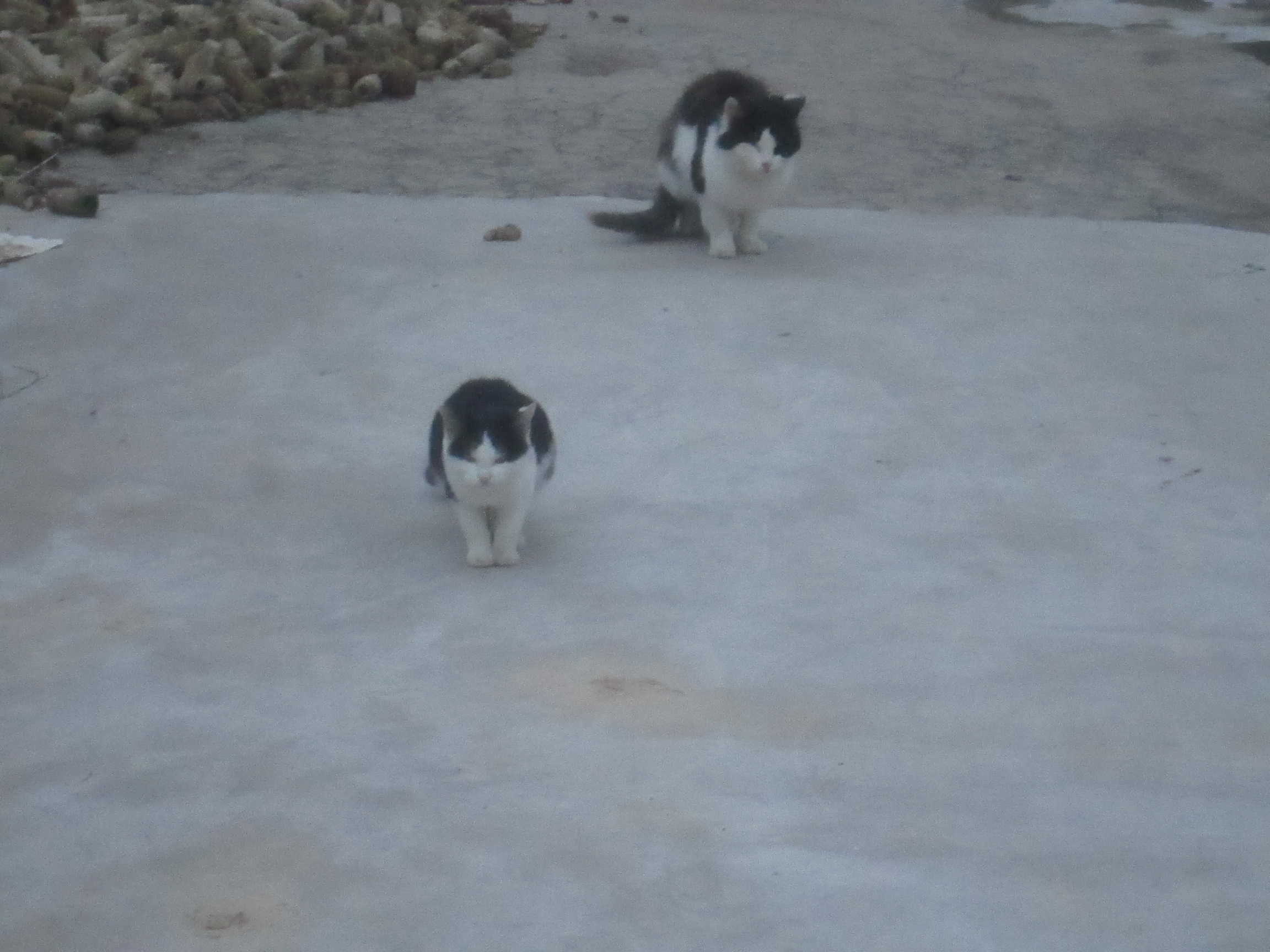 猫妈妈较大宝宝较小,妈妈的体型庞大,一双眼睛一直看着远处,好像是在思考什么事情。我一动它一动,跟在我后面喵喵的叫个不停,好象是在对我说:"主人我饿了。"看到这种情景,我就会给它找点吃的,这下它就会在那里认真的吃着美味。
