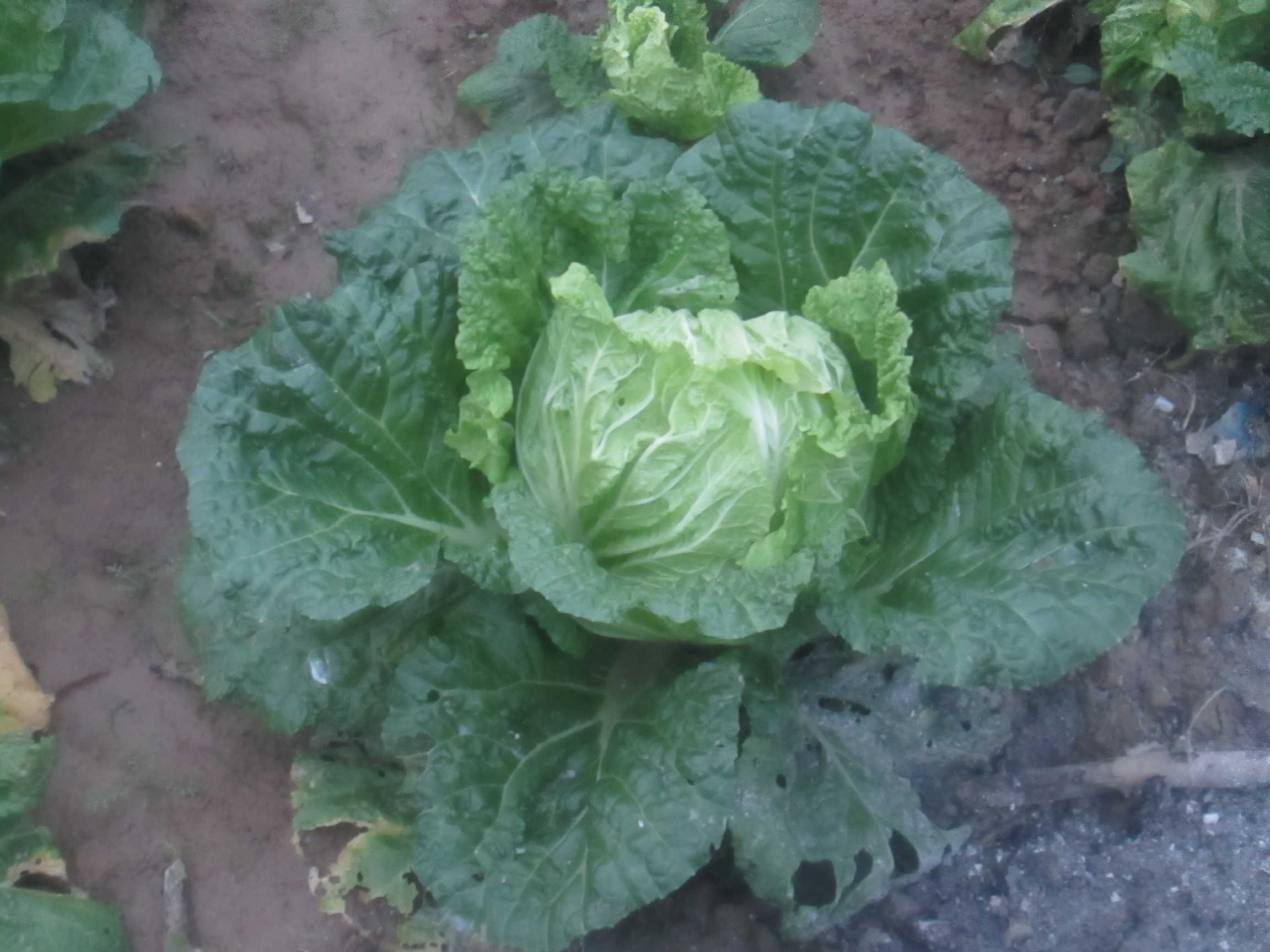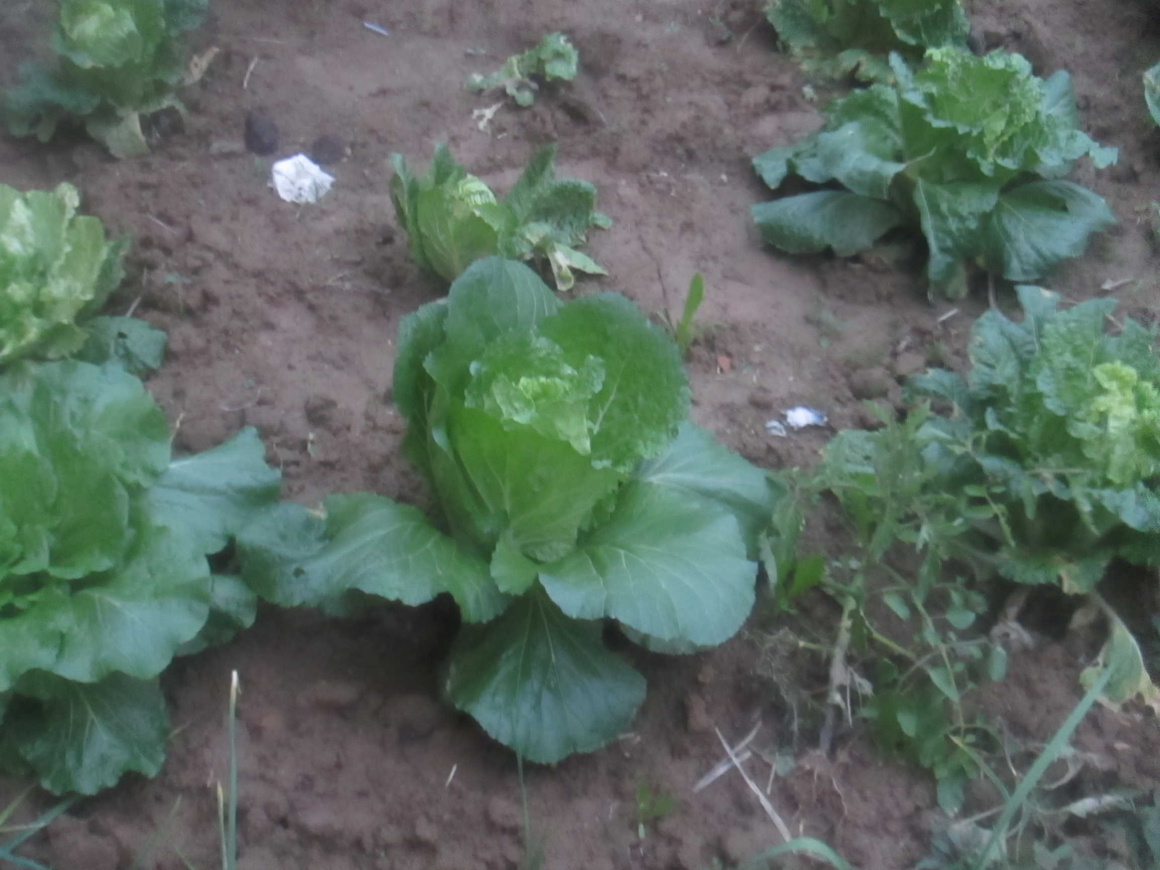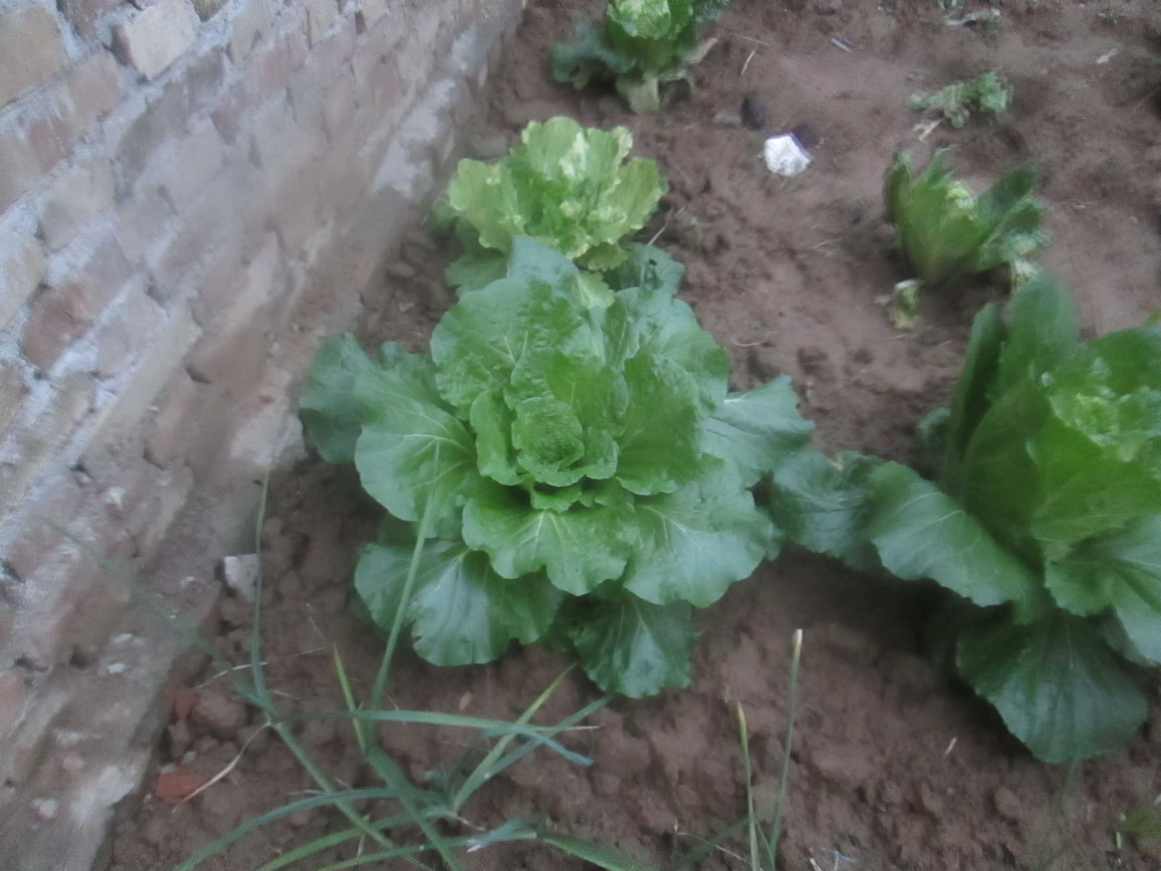 当然,也有没有长大的,叶子包着的就是,我们平时吃的白菜。在深绿色的叶子的包围下,它显得格外的引人注目。