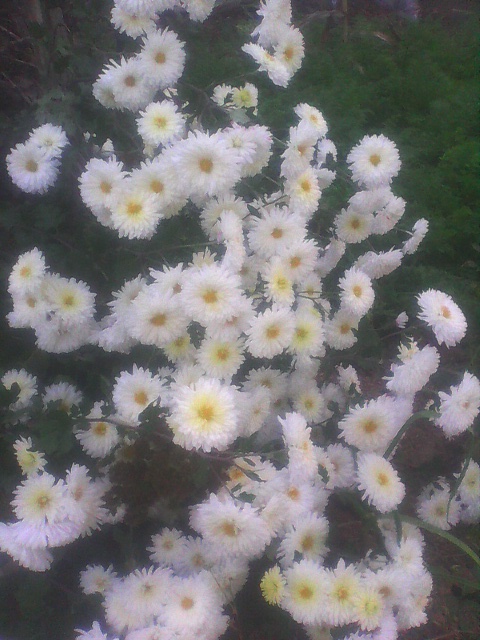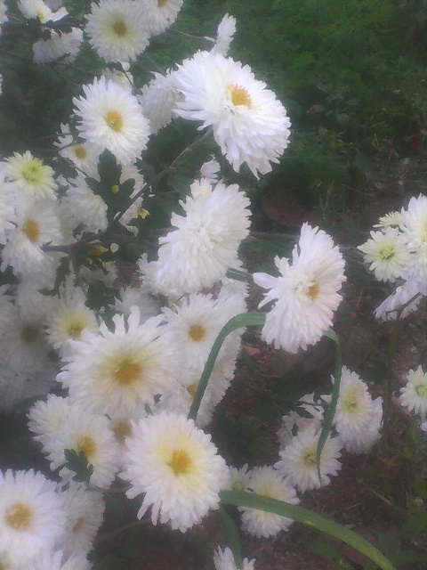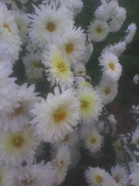 人人都怕秋雨,他让植物根茎腐烂,让道路泥泞不堪。但菊花是爱他的,一场雨,是那本就翠绿的叶片更显肥厚,让含苞待放的花骨朵积蓄了力量。 远看菊,我闻到空气中有淡淡的清香,苍翠的茎叶顶着一朵朵白色的花,恬静而高远。虽不似芍药红艳如流,不像桃花粉嫩如霞,却独有一种隐士情怀。正如周敦颐说的:"菊,花之隐士者也。"