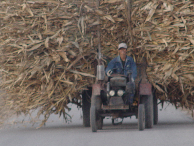 一阵拖拉机的声音传入我的耳中。原来是农民往家里拉玉米杆。好多的玉米杆,车在路上摇摇晃晃的,看着都让人捏一把汗。