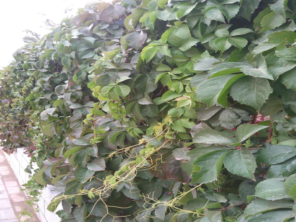 我们学校北面的围墙上,一到春天,就长了满满一墙的爬山虎。远远望去,一墙绿油油的爬山虎,像绿色的绒毯挂在墙上。走近那绿色的墙,你会看到爬山虎的叶子一片挨着一片,密密麻麻的。