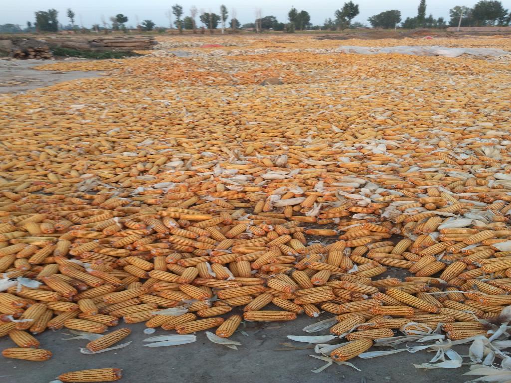 把玉米棒子倒在空旷的地方,晒在太阳底下。家家户户都要把玉米棒子晒在空旷处,以免受潮发霉。晾晒的玉米,看起来,像是黄色的海洋,一大片一大片满是的。