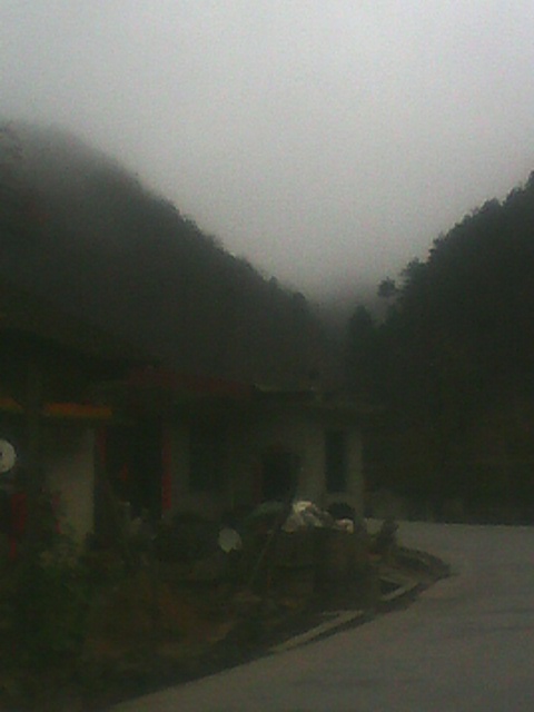 一大清早,茫茫大雾便朦胧了天地,贴心的给群山戴上了白毡帽,给树围上了羊毛围巾,雾大的时候,甚至全部遮住了对面的山,像牛乳般浓稠,化也化不开,拨也拨不去。山上的红叶耐不住寂寞也会透过白雾偷偷的向外张望,就像是待嫁的新娘从头纱中露。