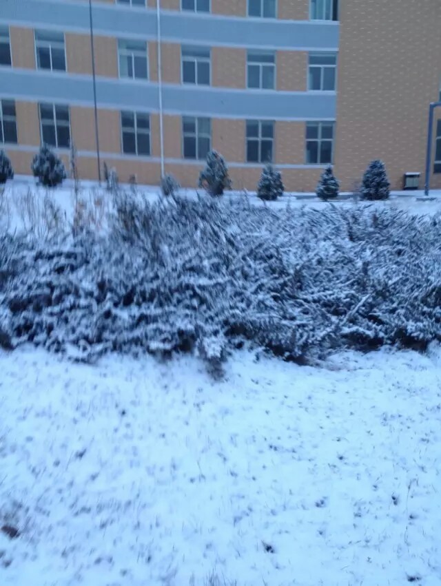 早上睁开自己朦胧的睡眼"冻死了!"哎呦,也不知谁把窗户打开了,一阵寒风吹过,几片雪花飘落在了宿舍地上。咦,下雪了?我赶忙擦了擦自己的眼睛向外望去,世界一片雪白,鹅毛般的雪花正随风飘舞!