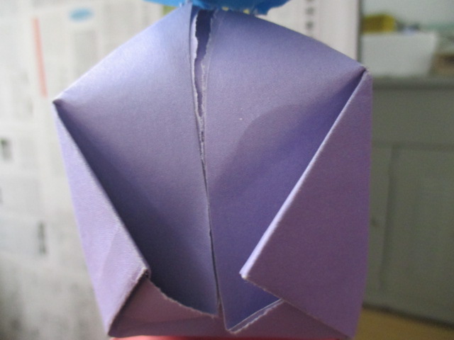 说干就干,可是家里没有南瓜,这可咋办啊!算了随便找个瓜吧,于是我便热火朝天的干了起来,不一会儿一个可爱的南瓜灯就做好了,它长着一个扁圆扁圆的脑袋,两个三角形的眼睛,一个长方形嘴,看着很可爱。
