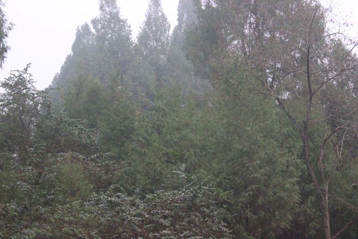 窗子外面是一个小山包,小时候我经常爬上去玩的。山上种了许多柏树,树下还长了其他一些不知道叫什么的灌木丛。秋天来了,校园里的大片绿色都已褪去,在繁忙的学习中,还能使我心旷神怡的,只有窗外的那片绿色了——那些柏树是四季常青的,脚下的灌木丛不知道为什么也是不掉叶子的。