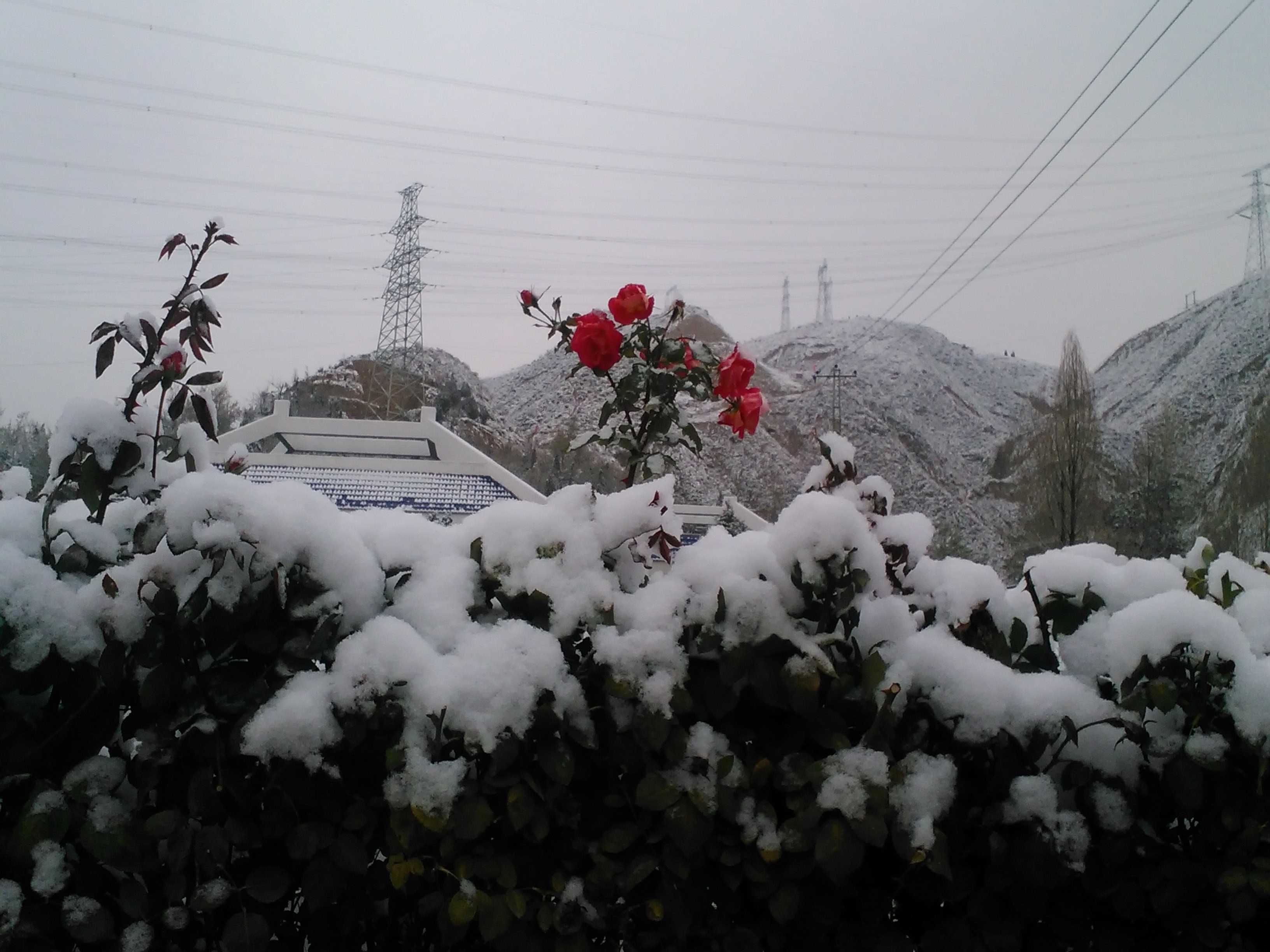昨天下的是雨,今天就是雪了。花儿们显得有些猝不及防,有的才刚刚开放,有的甚至还是花骨朵,就披上了银装。看!那些花,披了层银装,仿佛跟美丽了,即使下了雪,也隐藏不住那些花的美。