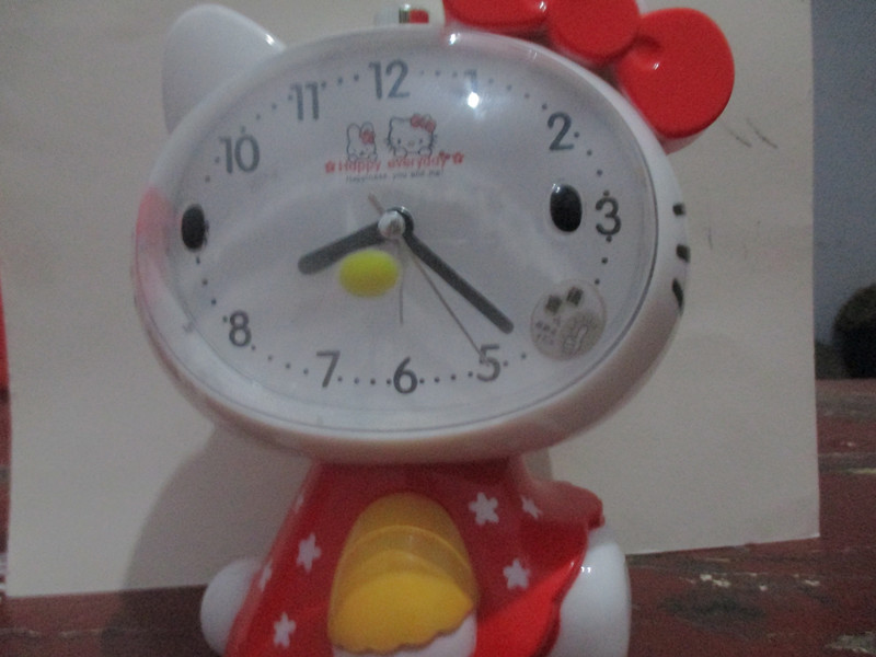 没过几天,妈妈就给我把闹钟买回来了。我放学回家一看,是一个非常精致的闹钟。它是一个非常可爱的小猫样的闹钟,它摆着身子斜坐在那里,但是脸是正对前方。