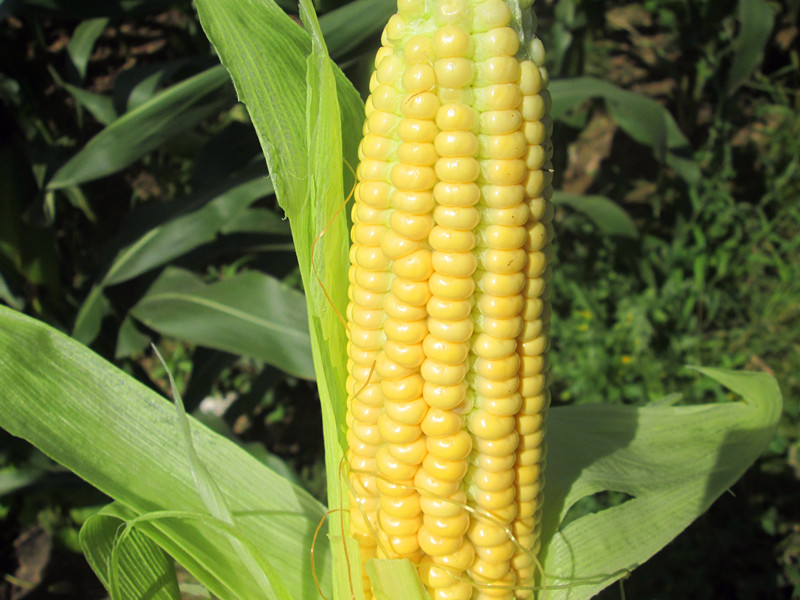 金色的玉米,连茎秆都变成金黄色的。一阵微风吹过玉米时起时伏,叶子不时发出沙沙的声音,好像再向大家点头致意。
