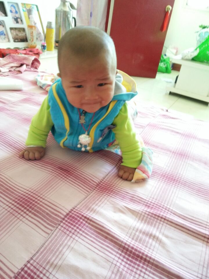 小弟开始学爬了样子特别可爱两只小脚乱踢双手一直往前爬身体却在向后一看了总能让人哈哈大笑,每每看到他在床上艰难的爬时,我总想对他:〞说弟弟我帮你。〞