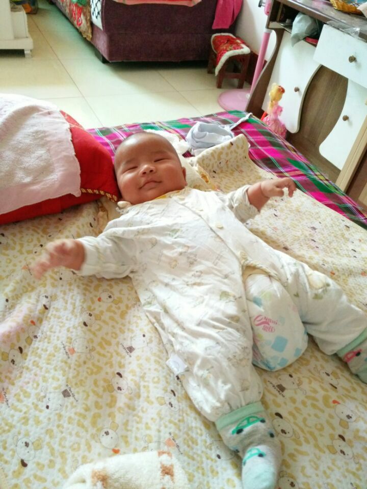 小弟睡着的样子千姿百态,一会儿用脚踢,一会儿用手,抓一会儿横着睡,一会儿竖着睡,一会儿躺着,一会儿趴着。还时不时的哈哈大笑,估计他是在做梦里。