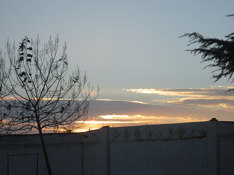 再向南边看看,那些更高处的云彩是蓝色的,在黄色的余晖中,它是得有些不和调,但是那蓝色的云朵,好像被它吸引似的,周围也都变成了黄色,那些黄色的光晕看起来似一只火箭升空,那样的奇妙。