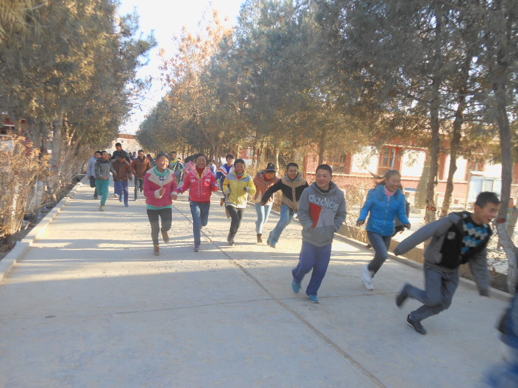 跑到操场上之后,同学们都有点儿气喘吁吁,有些同学是"拼了命"地往前跑,等到同学们都到齐了,各班的班长清点人数,然后组织同学们排好队伍,等待领导的检阅。