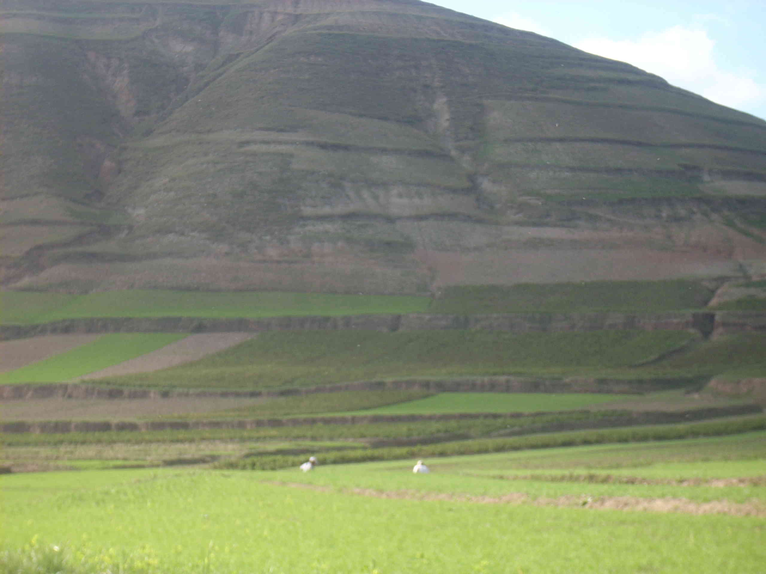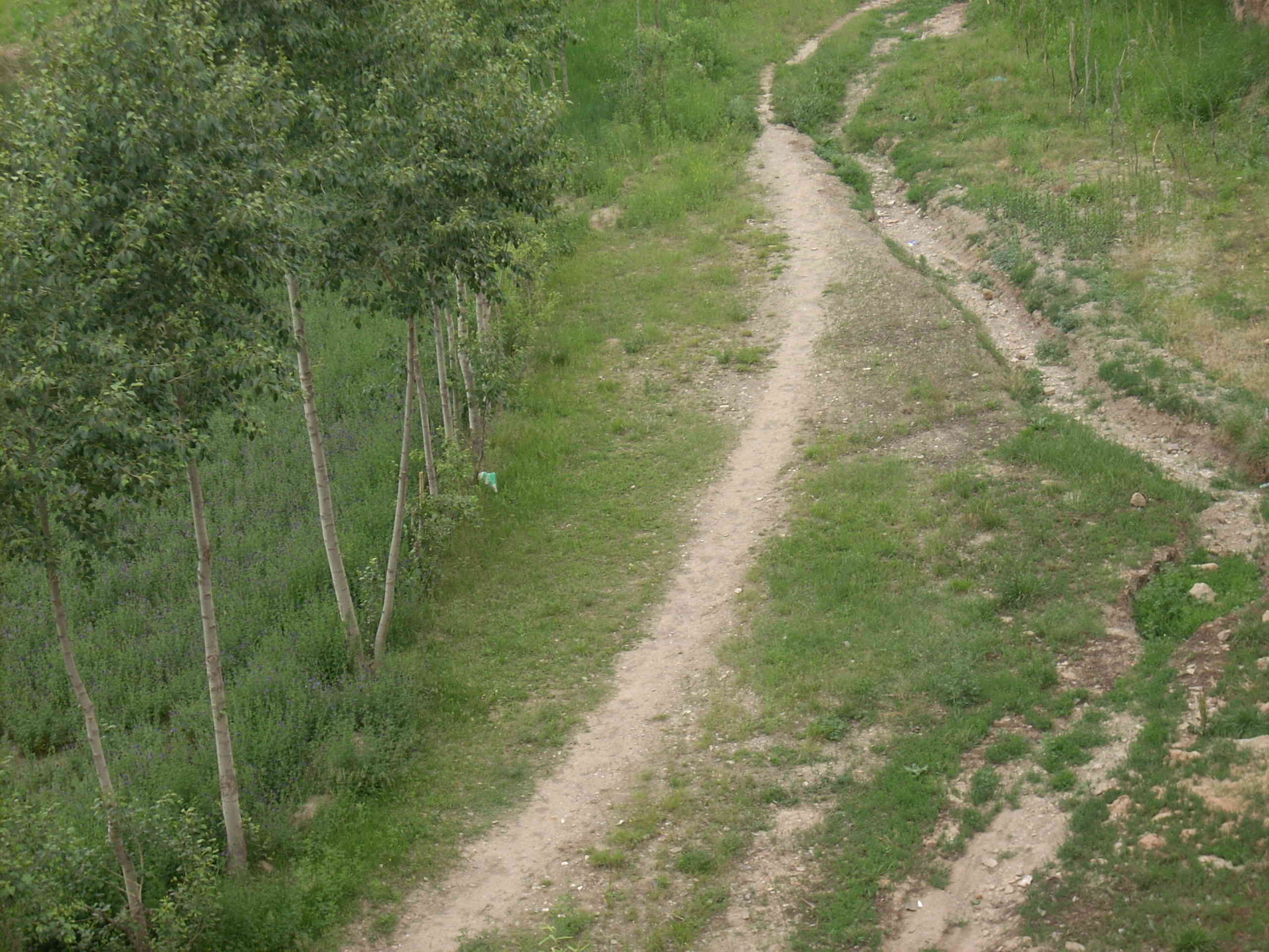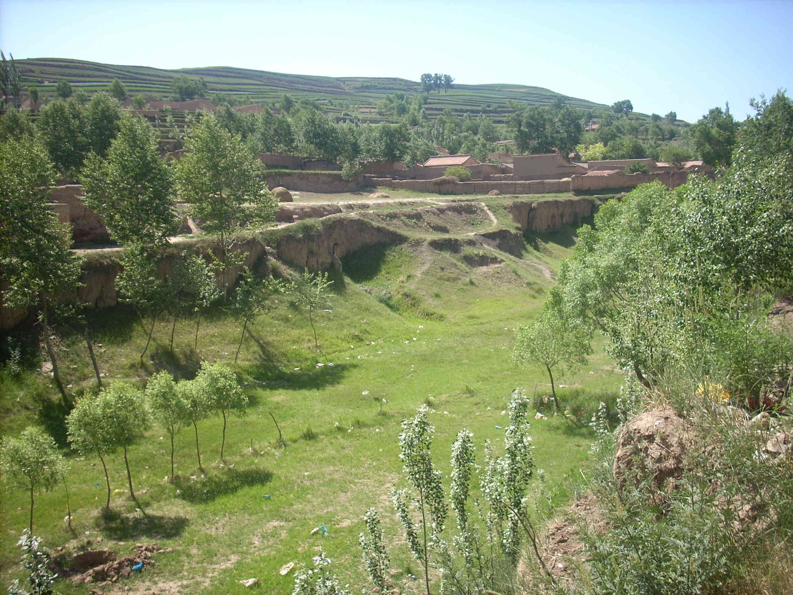 这种成片的绿是草。这偏僻荒凉的山里生命力最旺盛的植物。不需要栽种路边地头哪那都有。死活由它,自生自长,很易成活。根本不需要照管。