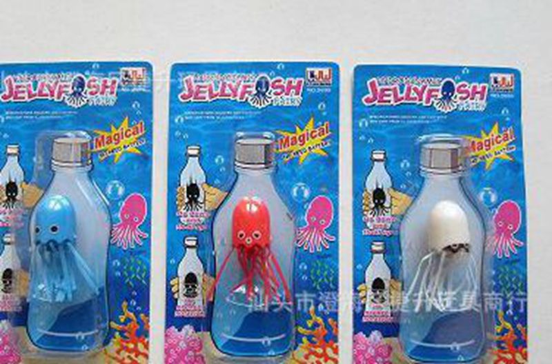 这几天,我们班的同学也喜欢起水母来了。我找我们同学要了十多个泡在水中,虽然我们都知道那是假的,并不是真正的水母,但是它们好像还挺好玩的。开始它们都是很小的,有的比米粒还小,泡在水里一天就和弹珠差不多了,有的甚至比矿泉水瓶盖还大。可是我好像不太幸运,十几颗水母泡了一天了都只有弹珠那么大。这些水母圆圆的就像可以聚光的凸透镜,又像是三棱镜可以分解光。